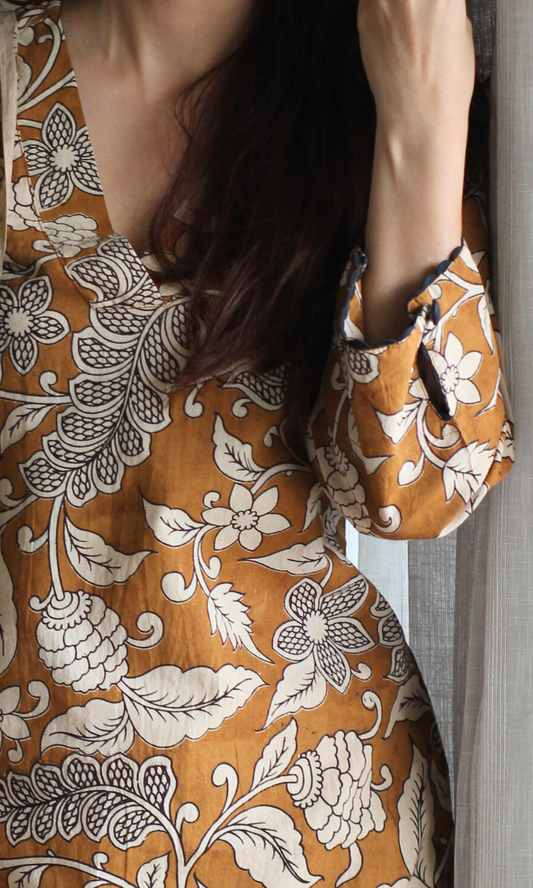 Kesar Cotton Handblock Kalamkari Kurta & Dupatta