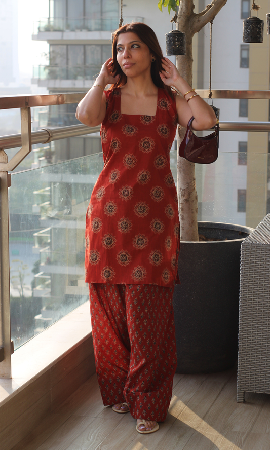 Red Sunflower Cotton Kurta and Farshi Salwaar