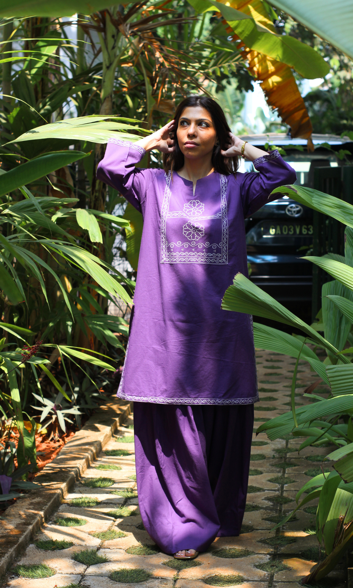 Deep Purple Handblock Kalamkari Kurta, Cotton Handblock Dupatta & Pants