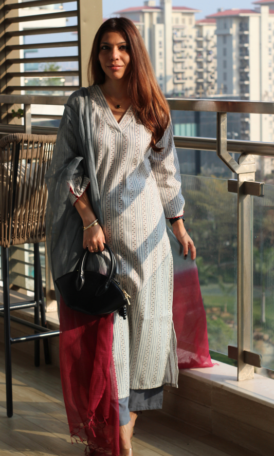 Cotton Orchid Block Printed Suit Set with Kota Doria Dupatta