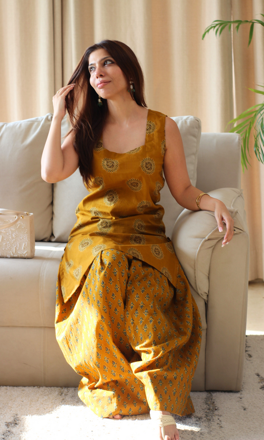 Mustard Sunflower Cotton Kurta and Farshi Salwaar