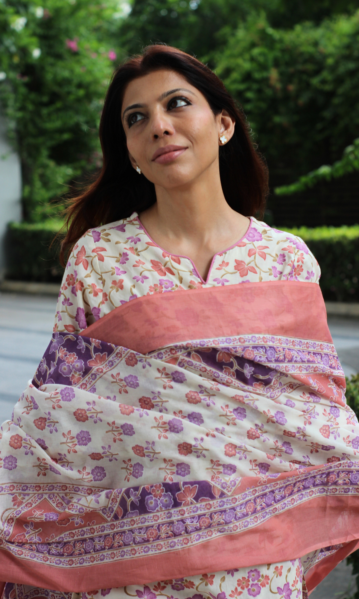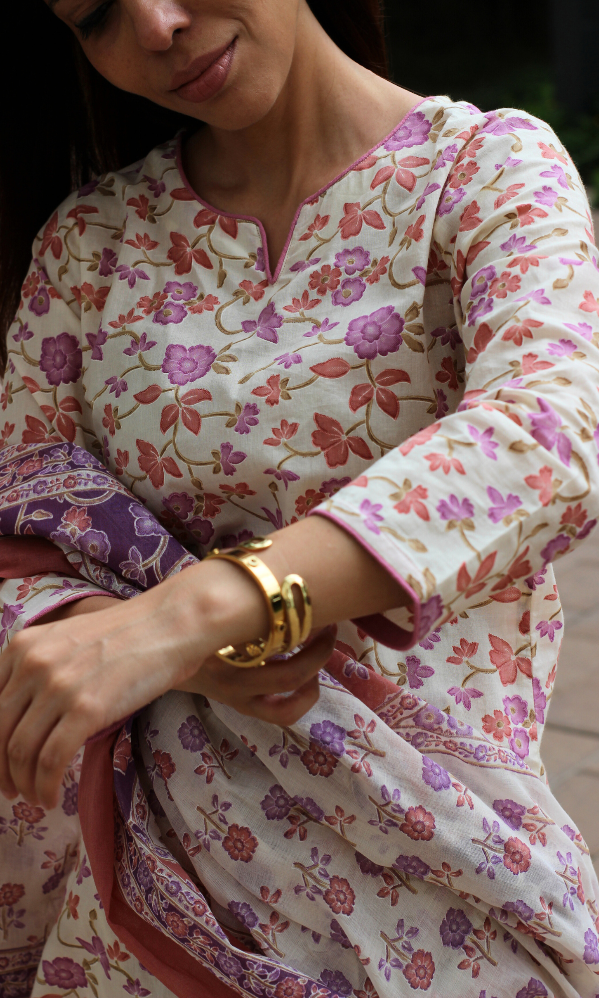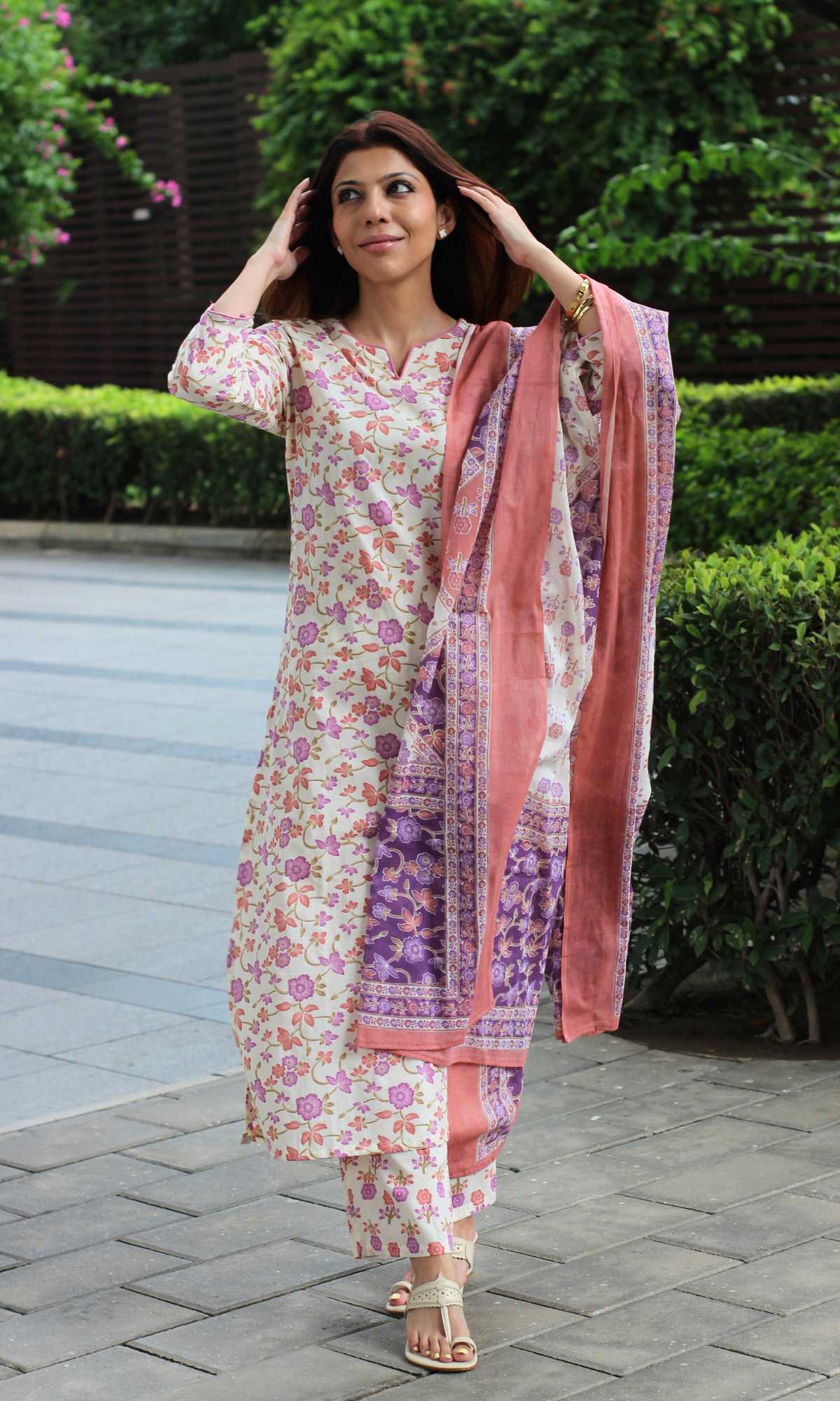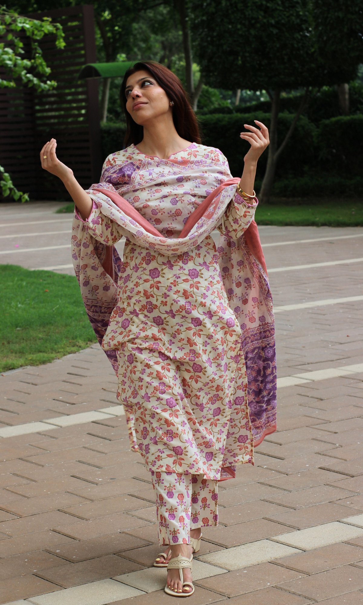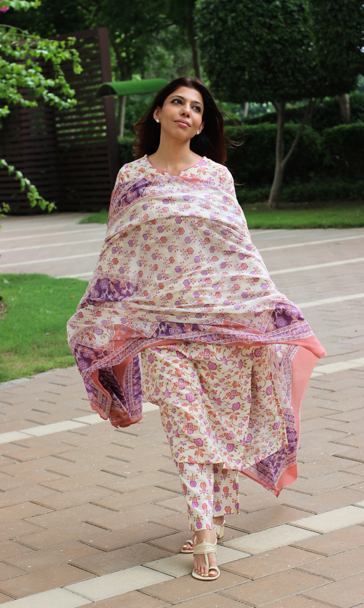 Cotton Monsoon Blush Printed Suit with Cotton Dupatta