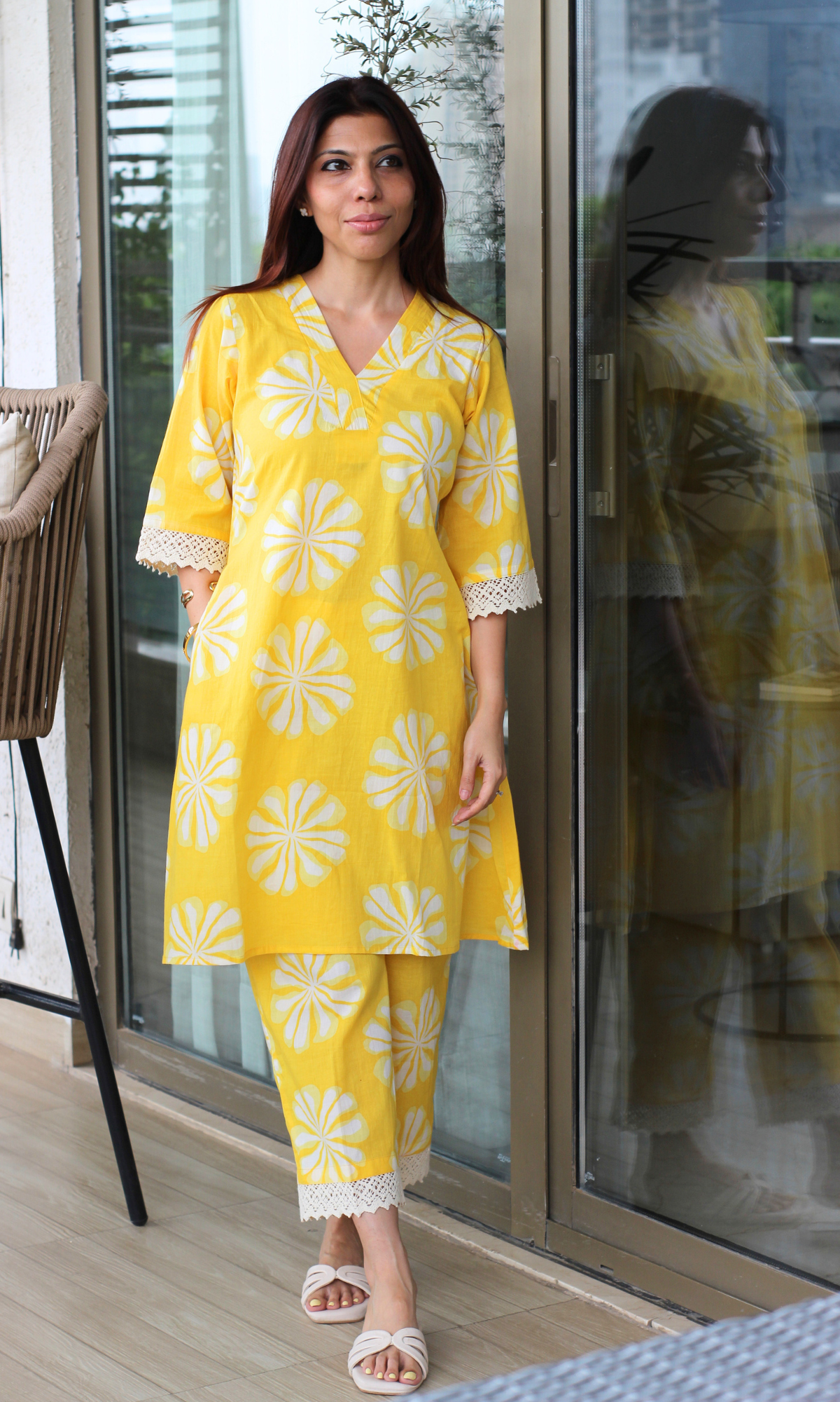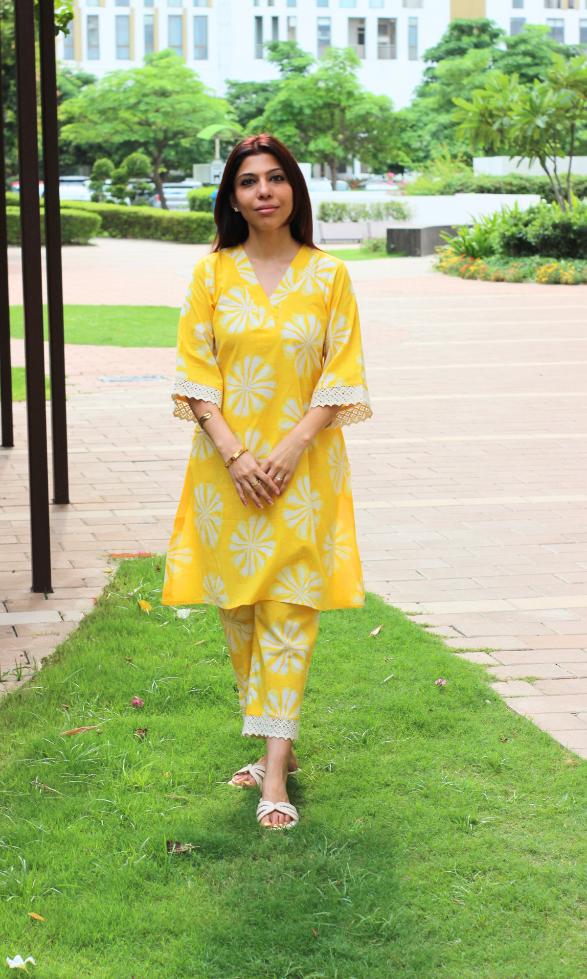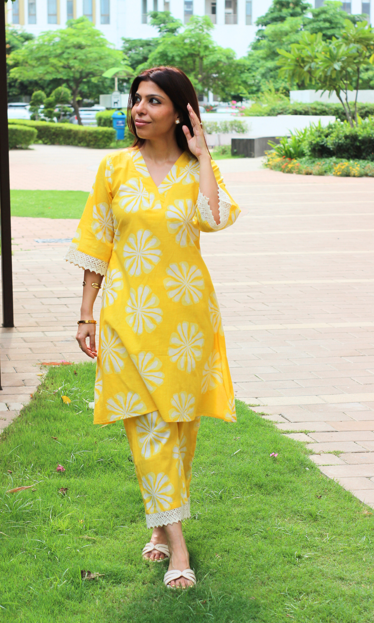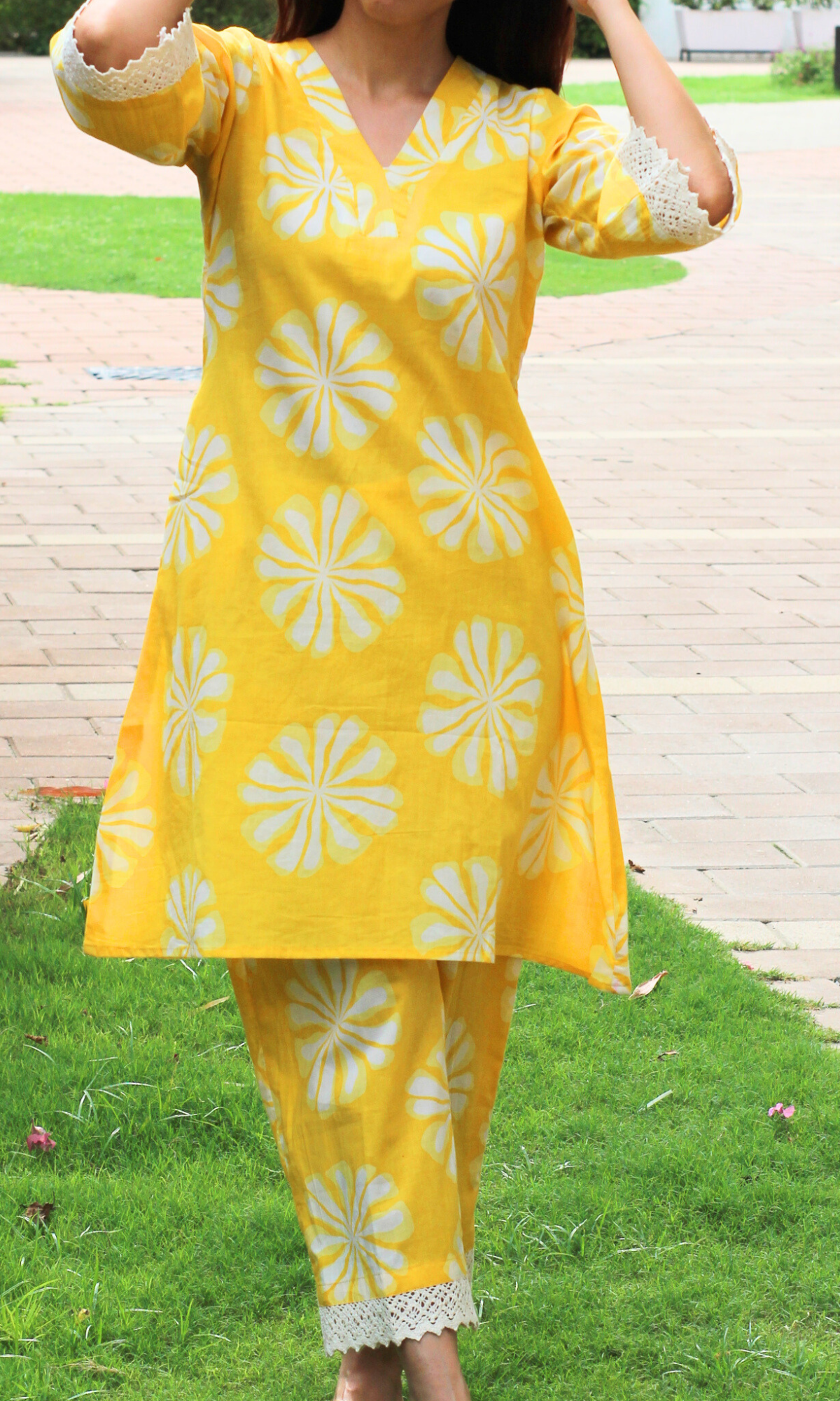 Cotton Yellow Daisy Laced Co-ord