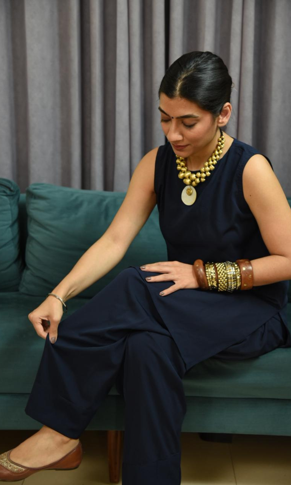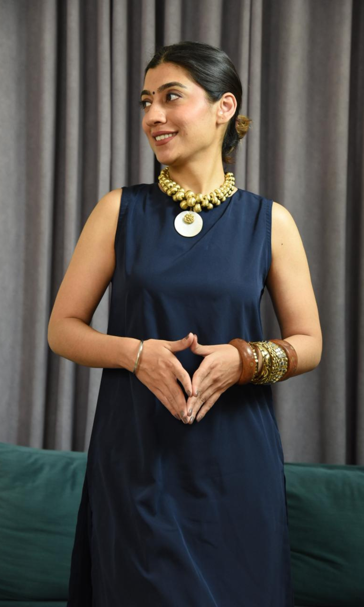 Deep Blue Glossy Boat Neck Kurta with Farshi Salwaar
