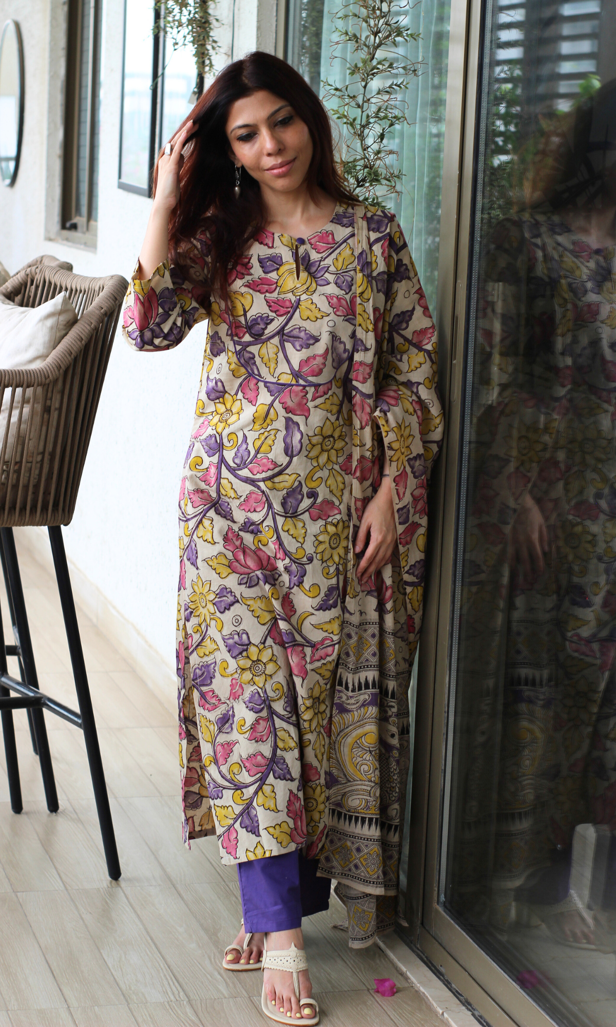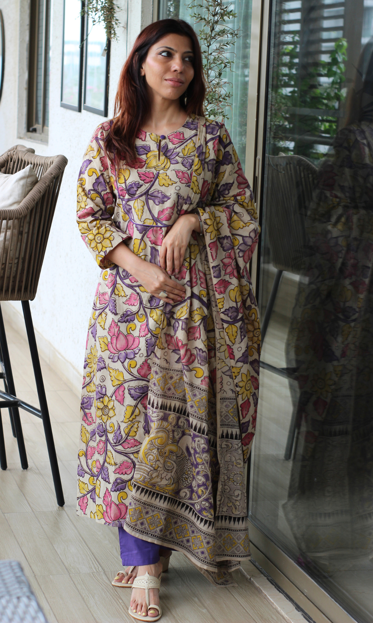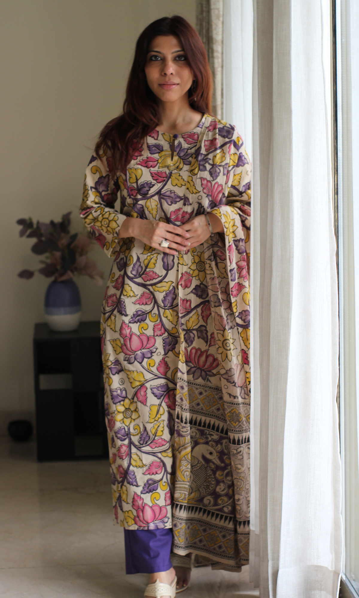Kavya Purple Handblock Kalamkari Kurta, Dupatta & Cotton Pants