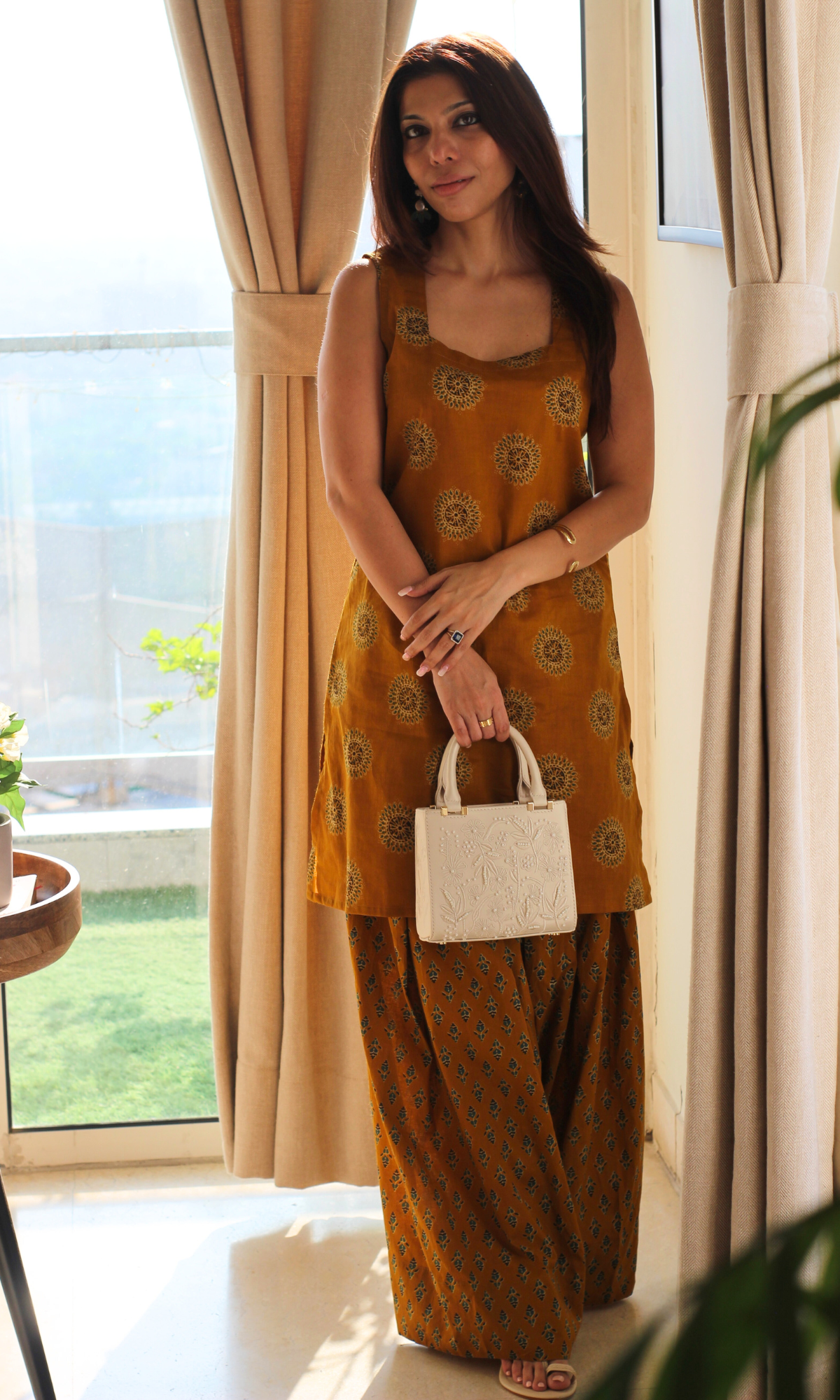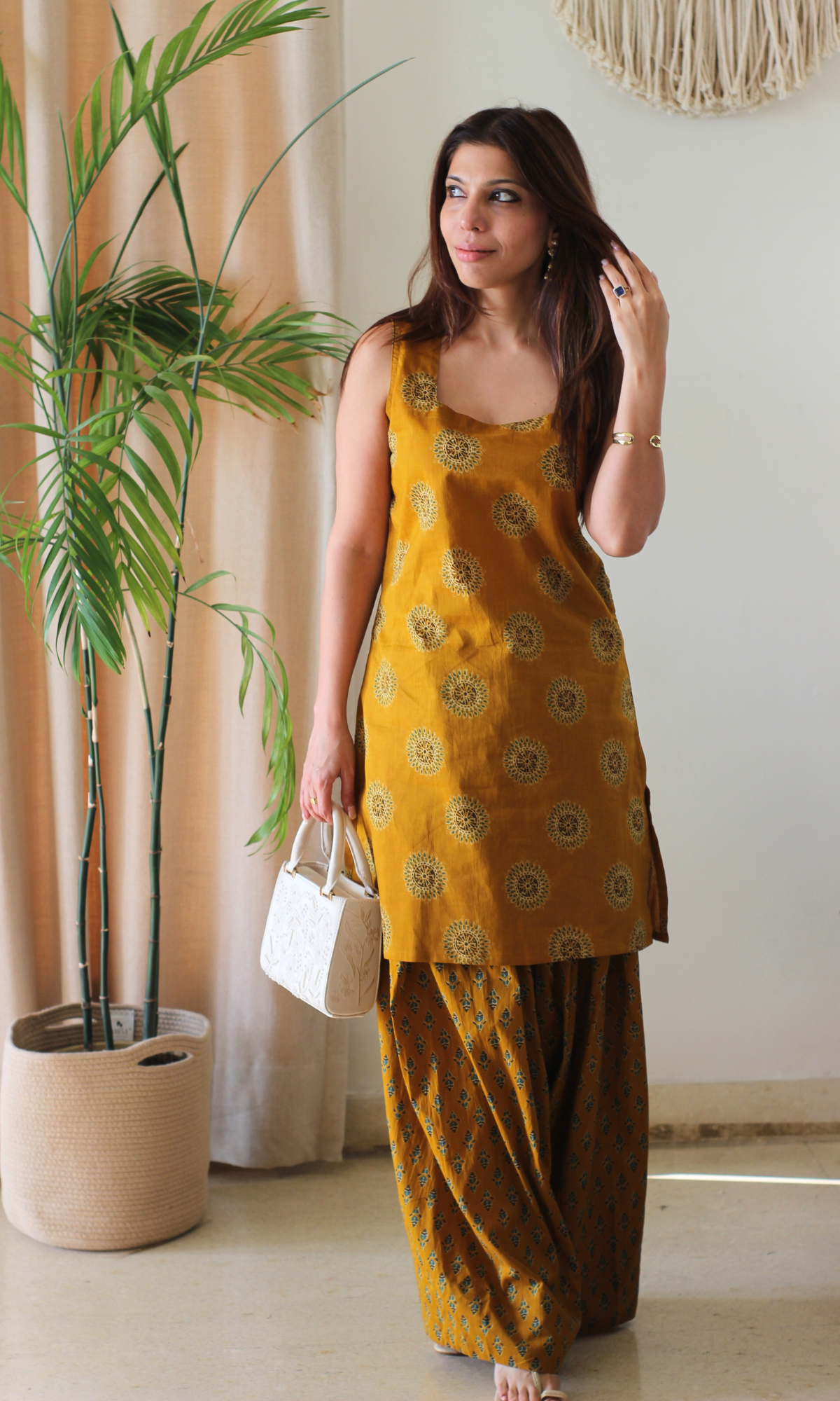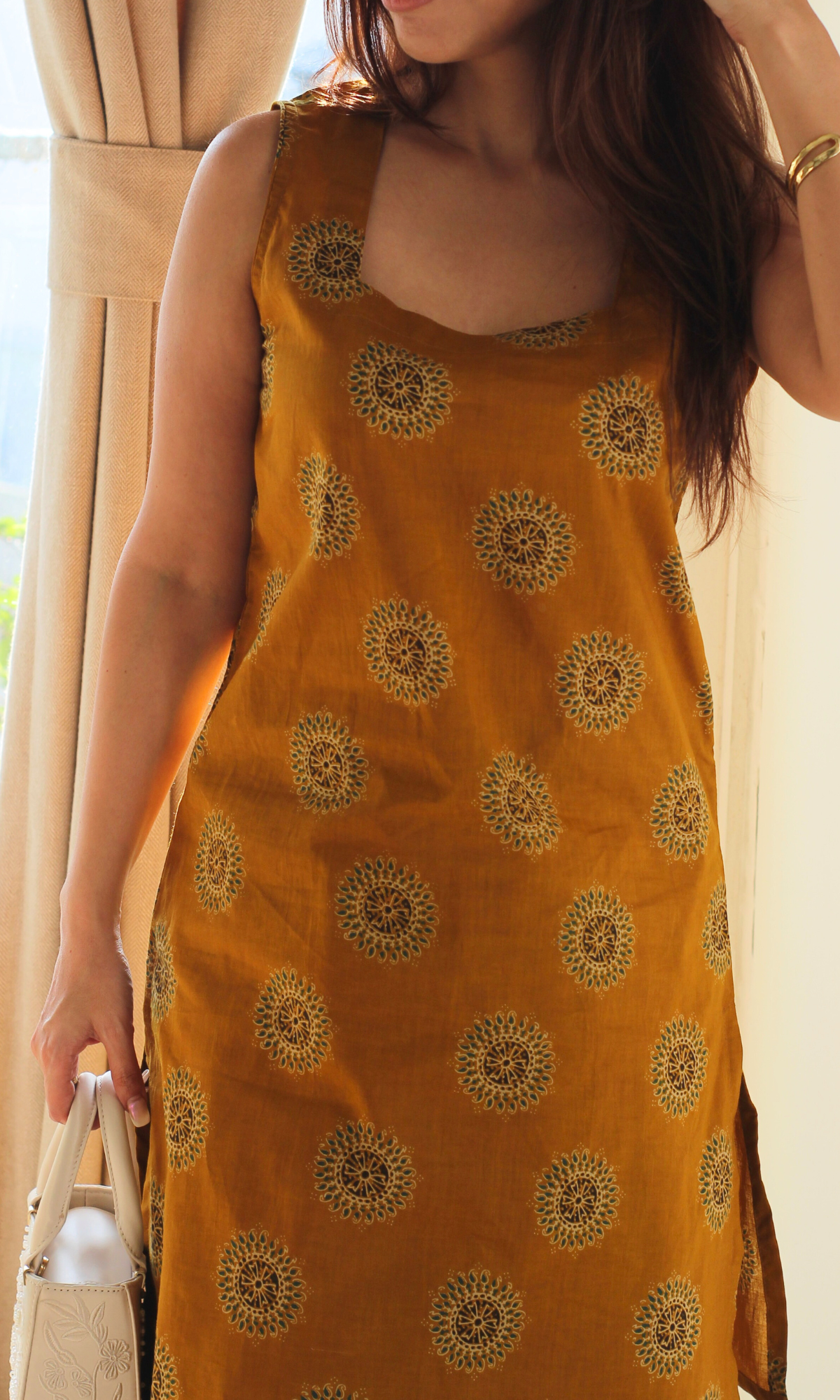 - Handblock prints may bleed color - wash separately.