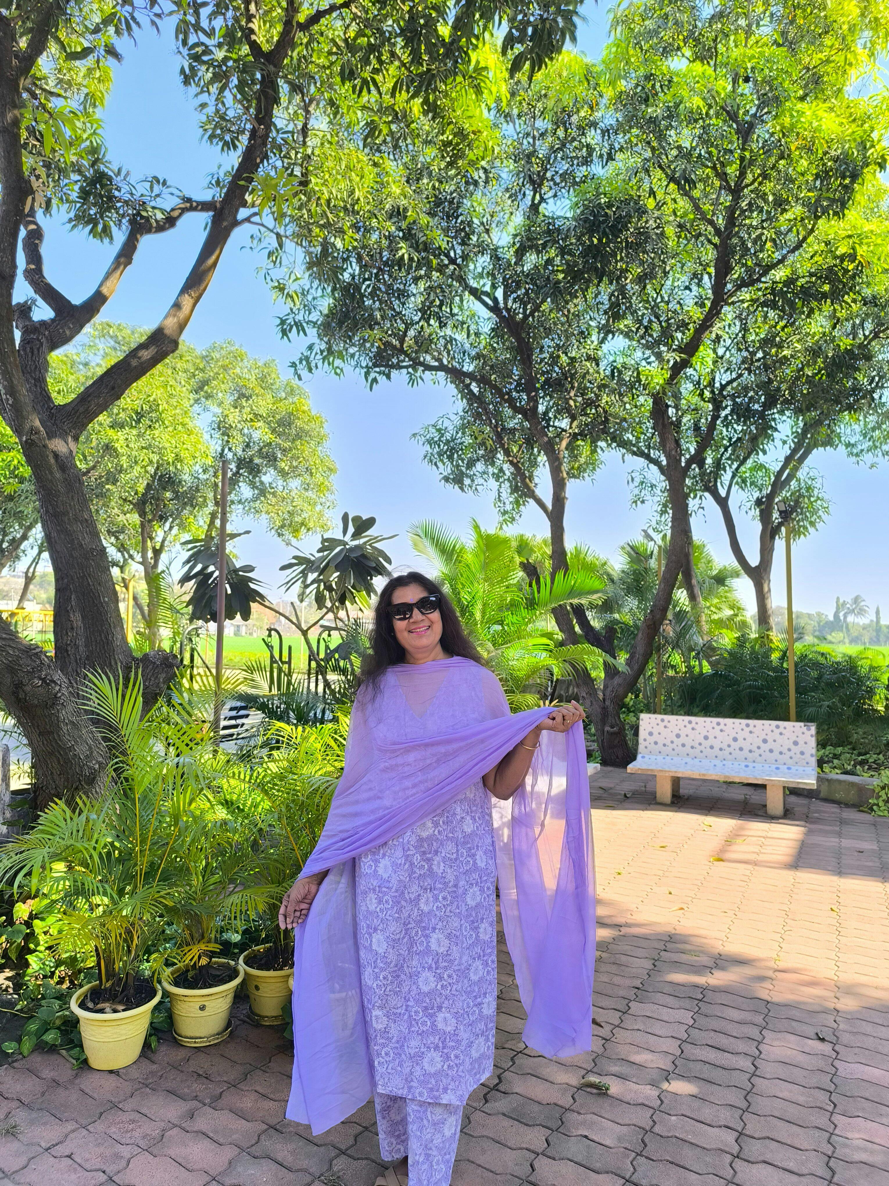 Pastel Lilac Pintex Neck Sleeveless Kurta, Pant & Chiffon Dupatta