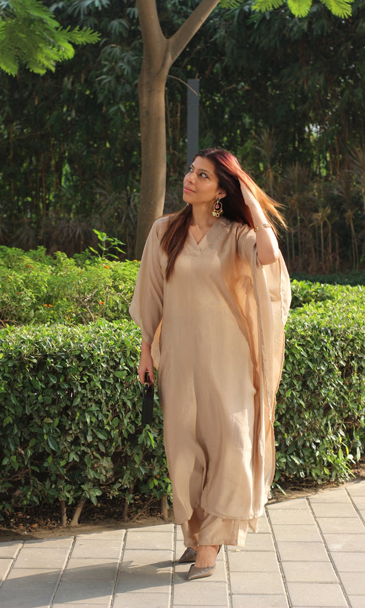 Muted Taupe Embroidered Anti Fit Kurta & Farshi Salwaar